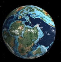 300 Mya:   Drifting continents coalesce into a single land mass: Pangea