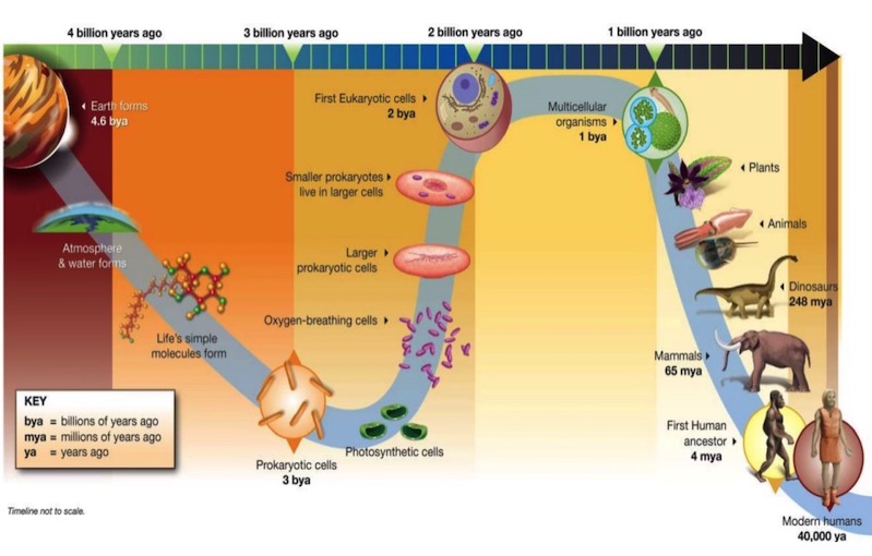 - 65 Mya:   Mass extinction of dinosaurs as well as 85% of land and marine species